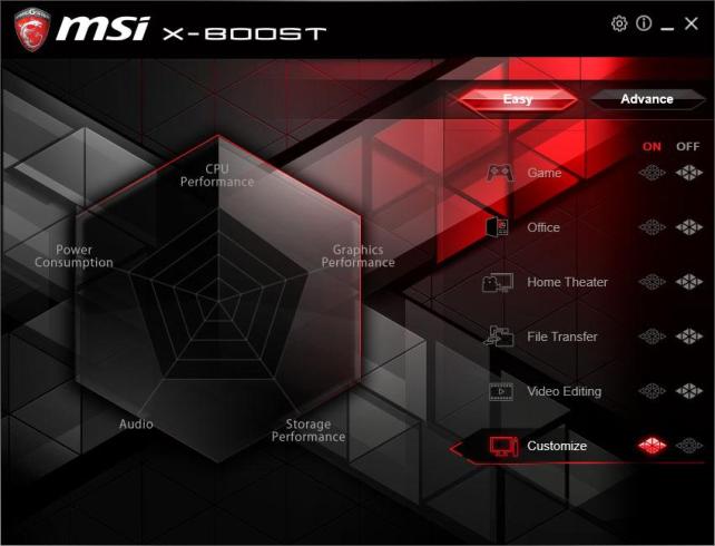 MSIの説明では、「システムの最適化を補助しシステムレスポンスを向上させ、スムースなオーディオ/ビデオ再生エクスペリエンスを得るための便利なツールです」ということですが、見たところOC関連やPCの安定性などに関連する項目をピックアップして設定が可能なユーティリティのようです。