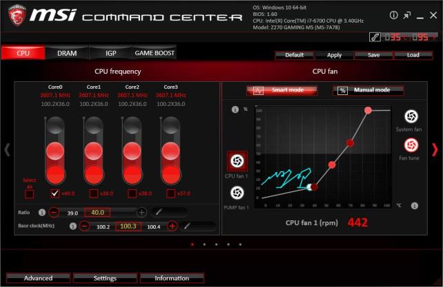 といっても、MSI製のユーティリティのほうが細かいところまで手が届くので、こちらのツールはあまり使うことはないと思います。
