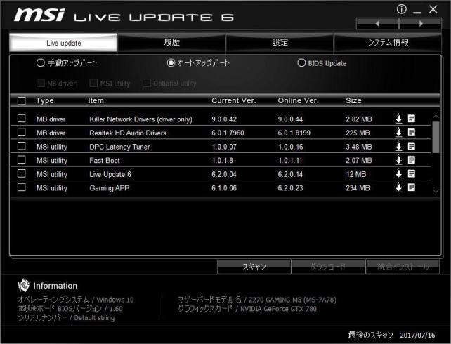 面倒で忘れがちになる、各種ドライバ、BIOSのアップデートを自動的に行ってくれるユーティリティ。