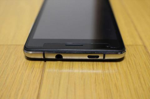 本体の上側に、イヤホンジャックとmicroUSBポートがあります。