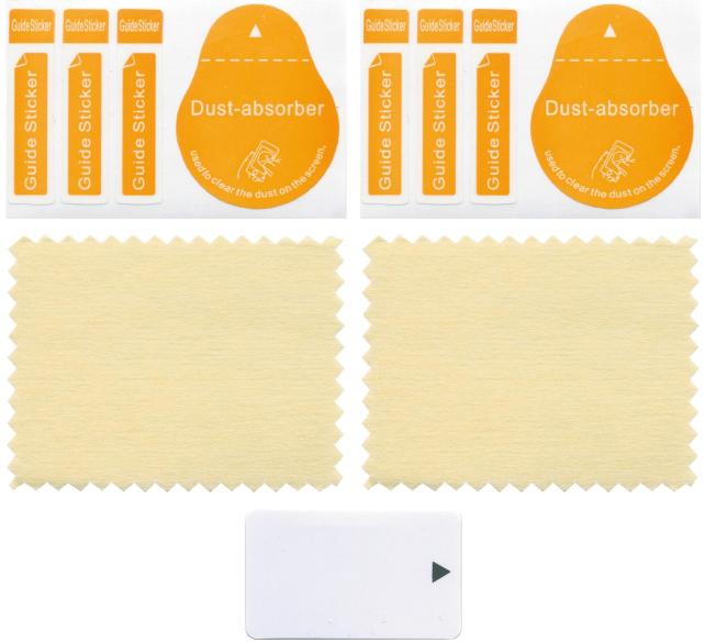 一番上が、ほこり取りと位置決め用ガイド,中段がドライのクリーナーシート,下段が気泡押し出し用の紙製ヘラです。