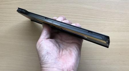 1)本体の質感はザラっとした感じで指紋も付きにくい。