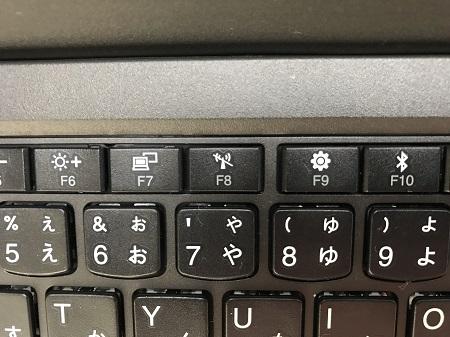 見ずらいですが、写真の様に他のキーに比べてファンクションキーが薄く書かれており