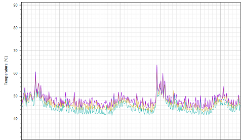 CrystaiDiskMarkを走らせた後なので多少は温度が高いが、思っていた以上に