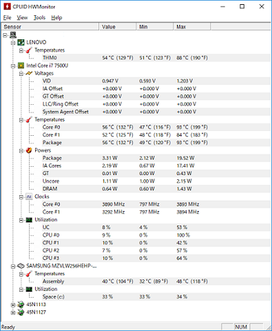 もしやSSDかな?とHWMonitorで確認すると最大48℃