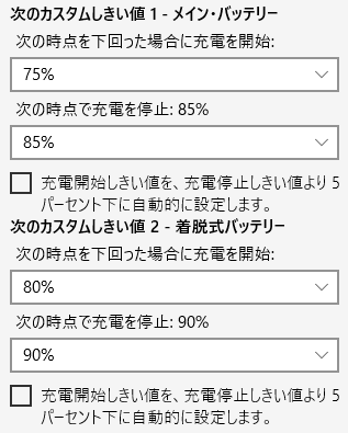 メインの使用方法としては、充電しながらのスタイルですのでバッテリの充電設定を変更してみました。