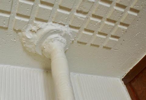 業務用エアコンの配管部には、塗装対応シーラントを多めに盛り付けて処理します。