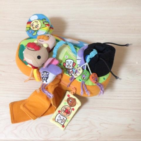 チャイルドシートやベビーカーにセットして、「お出かけの時にも赤ちゃんが退屈しない様に」と考えられた布の玩具です。