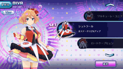 歌姫の衣装変更が出来ますが、衣装を入手しないと着替えられません。