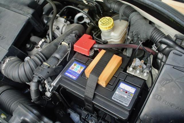 欧州車用バッテリー下部には、ツバがあり、それを金具で固定する仕組みが多いのですが、FIATは保険としてバンドでも締め付ける方法を取っております。