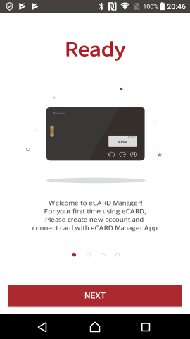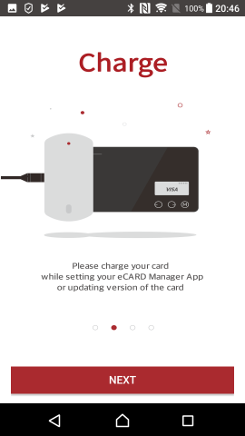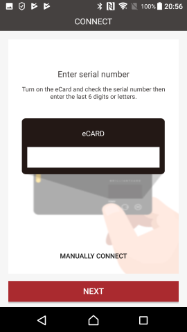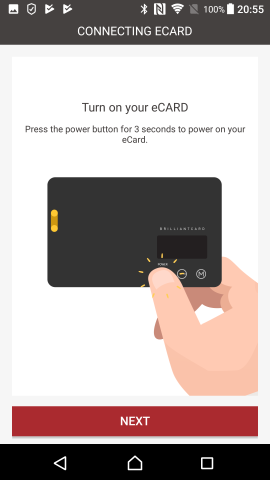 カードの電源ボタンを3秒ほど押してから、アプリの「NEXT」をタップ。