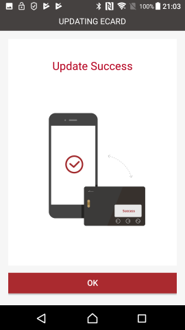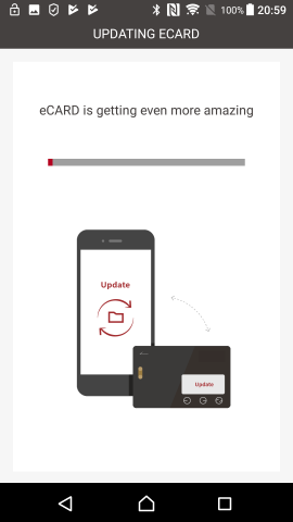 XperiaとFuzeCardとのペアリングが完了すると、カードのアップデートが開始されました。