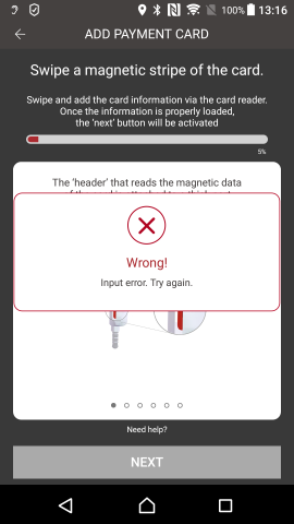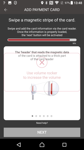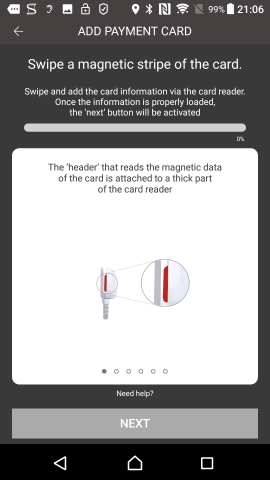 Xperiaに接続したストライプリーダに何度かカードを通して登録していきます。