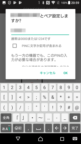 Bluetooth接続認証コードの入力画面は通知メニューに隠れたままだったので