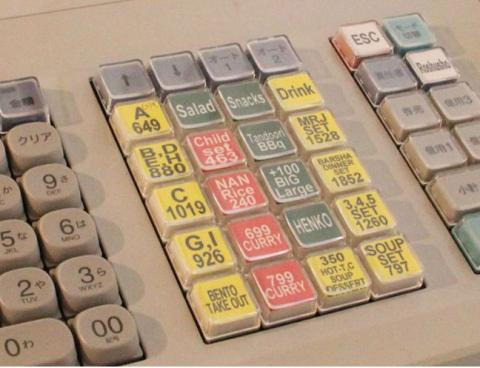 そのため、機能キーにもキャップが付いていますが、ネパール人がばかりのカレー店では、割り付けを変更するよりも、キーの名称を英語化するのに便利です。ただ、スタッフが普段使用している用語に適応させたほうが馴染みがよいので、「領収書」⇨「Ryoshusho」だったりします。日本語ではレシートと領収書は別物ですが、英語ではどちらも receipt なので混乱の原因です。