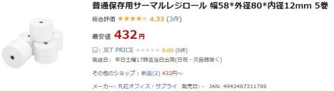 仕様では、「幅:57.5 ±0.5mm 最大外径 81mm の感熱紙」 となっています。