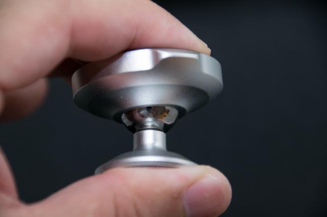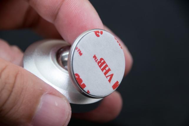 金属削り出しのフォルムが綺麗ですね。磁石ホルダー部分は500円玉大の大きさです。この中に4つの強力な磁石が入っています。