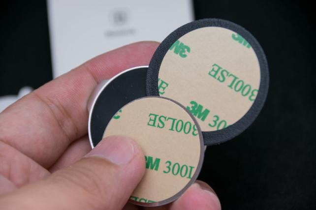 この付属しているシート2種類のどちらかを端末に貼り付けておくことでホルダーに固定できるようになります。どちらも保持力は同じくらい強いです。