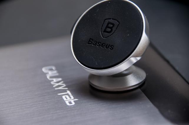 最初、スマートフォンくらいの大きさであれば大丈夫だと思っていて、タブレットは重量よりもその大きさから重心の取り方が難しいですし、保持力はそんなに高くないだろうと思っていたので、車に取り付ける前に手で持ってみたのですが、多少揺れてもビクともしない保持力には驚きました。ボールジョイント部分側でも内部の磁石と引き合っているようです。
