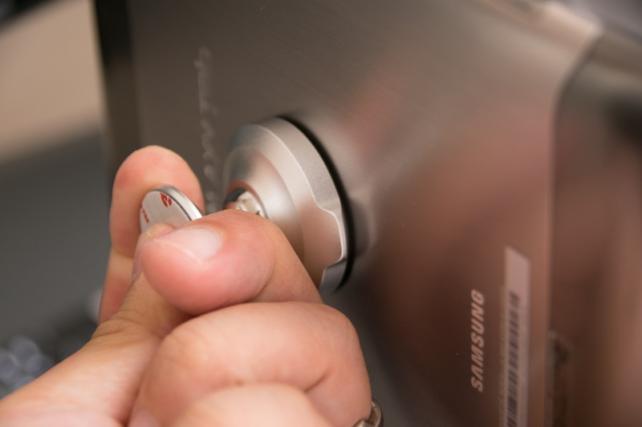 発売当時に使っていたもので、もう5年以上前の機種になります。通信用の端子が当時のGALAXYシリーズ共通の専用端子だったり、搭載OSがAndroid 4.0、使用可能microSDカードが32GBまでと現行のタブレットと比べるとかなり見劣りするスペックではありますが、MP3やAACのデータを再生させるだけなので、これでも必要十分なスペックです。当然キャリアとの契約は切れているのでSIMカードでの通信は出来ません。