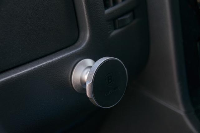 取り付けた場所は、45度ほどの傾斜が付いた箇所で、ほんの少しだけラウンドしていましたが問題無く保持してくれています。マグネットが4ヶ所に入っていて、かなり強力にくっつくので車が動いて振動しても位置ずれや回転してしまうこともありませんでした。ただ、マグネットなので磁力が弱くなったり、金属側の疲労もあると思いますので、長期に渡って経過を見てみないとわからない部分もあると思いますが、おおむね満足です。