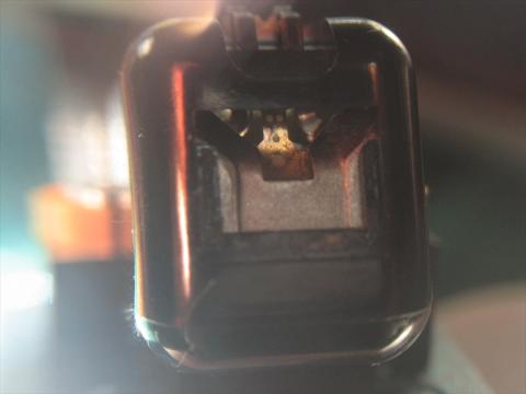 高域低下の理由は不明ですが下画像M型アーマチュア付近の樹脂を見るとオイル状のシミらしきものが