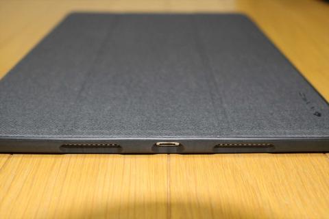 Lightningのところですが、9.7版は開口部分が少し小さかったので、Apple純正のLightningケーブルなら問題ありませんでしたが、少しプラグの大きいケーブルだと、入れにくかったんです。