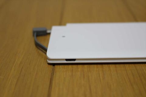 このモバイルバッテリーを充電する時に使うmicroUSBポートは、本体の横側にあります。