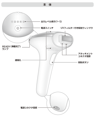 こちらは、ボディー用アタッチメントだったとしても、しっかり照射できます。