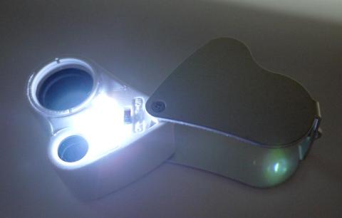 ルーペの下面です。LEDが2個と切り替えスイッチがあります。