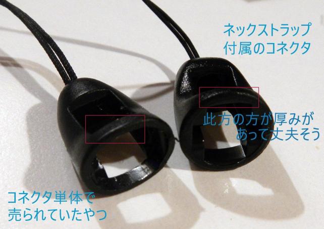 汎用ショルダーストラップをスマホ用にするにあたりコネクターパーツだけ売られている製品を買った訳なんですが元々付けてるネックストラップ用のコネクタと形は似ているが微妙に違うので互換性は無く、そのくせ脱着できてしまうのですが組み合わせを間違うとすっぽ抜けやすいという・・