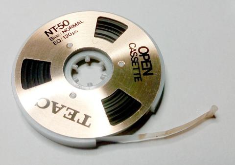最後に、固定されている側のリール中心近くにある切り欠きに、テープ先端の部品をセットして終了です。こんな作業、恐ろしくて屋外ではできないですよね?