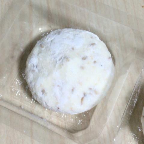 表面の粉糖はチーズパウダー入りで、ほんのり塩気が後を引く味わいです。