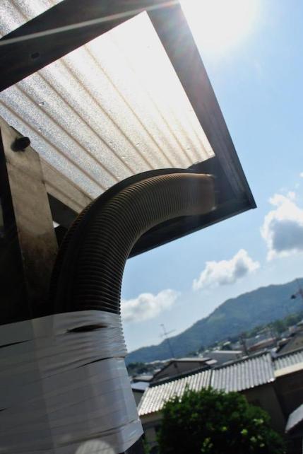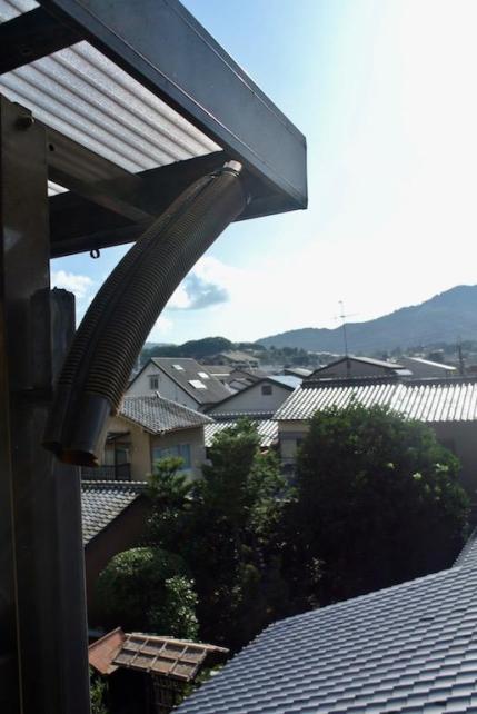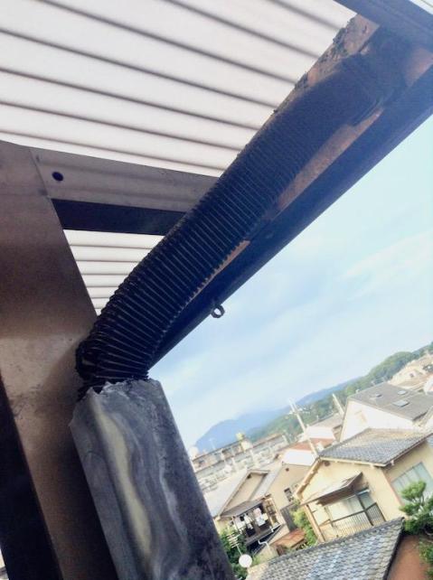 物干しの透明屋根板を交換した際に、雨樋用の樹脂パイプが破損していることに気づきました。