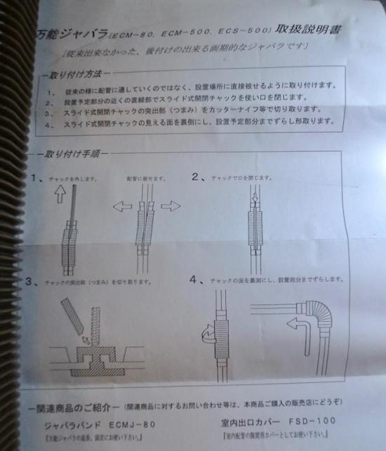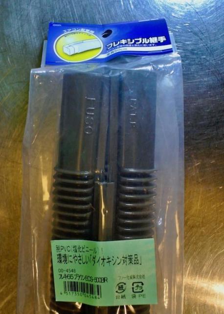 弾力性の強い合成樹脂製ですので、適応場所配管に被せます。被せてから最適な位置までズラします。
