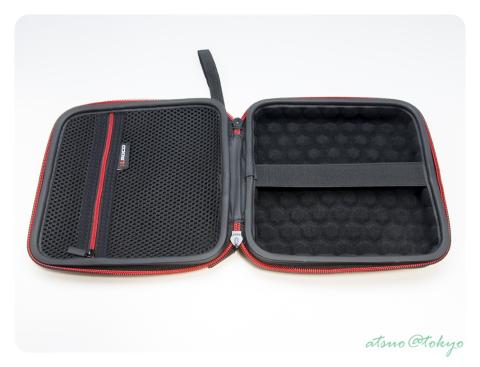 もっとも厚さに関しては上段のポケット分も使えるので厚みはもっとあっても大丈夫ですが、入れるモノの外径が上記サイズより少しでも大きいと入らないのはハードケースの宿命ですね。まぁ、セミハードは若干の猶予はあるって感じでしょう。
