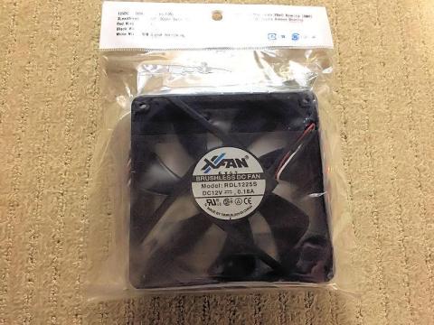 ただでさえエアフローは決して良くないケースですので、これを放置すると内部温度にかなり響くということで、ケースファンも交換することにしました。そして、このケースファンが丁度12cm角だったのです。