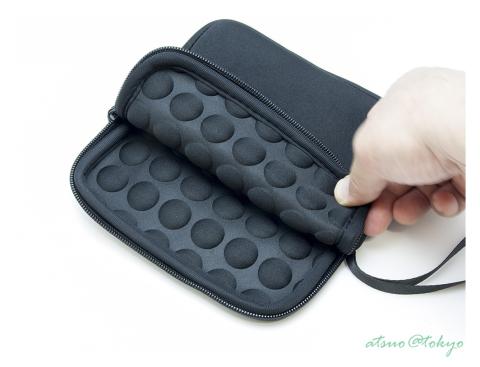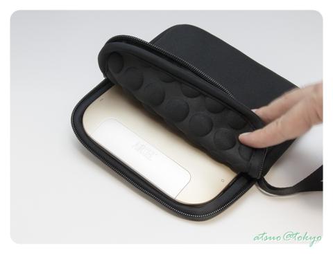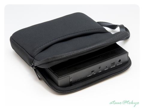 プロジェクターはレンズのある側は約22mmあるのですが周囲は 5.5mmしかないので、レンズ側を先に入れる事で、縁を引っ張らずにファスナーを閉じられました。