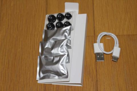 サイズの違うイヤーパッドと充電用のケーブルが付属しています。
