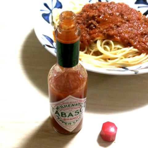 クラッシュドレッドペッパーを切らしていたので、タバスコを使いました。