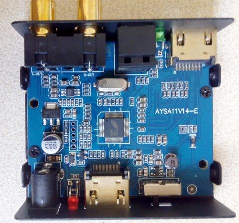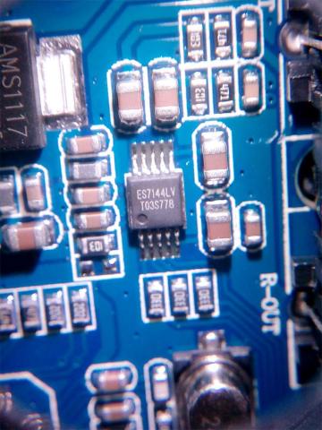 2chのアナログ出力は、Everest Semiconductor製の24-Bit, 192 kHz対応2ch DAC ES7144LVです。ΔΣ方式のDACですが24bit対応とはいっても、アナログ特性ではダイナミックレンジが95dB、THD+Nが-85dBというスペックですので入力フォーマットとしては24bit対応していても、DACの性能的には16bit程度でしょうか?