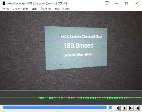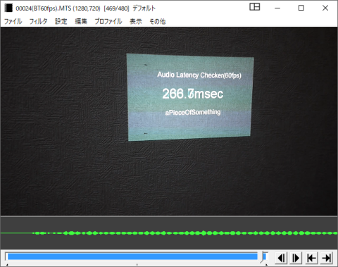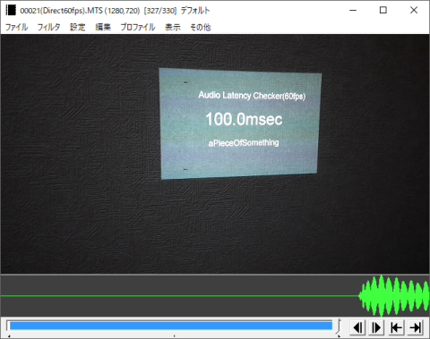 ↓はHDMIオーディオスプリッター使用時の60fps、100msec後。