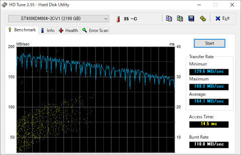 5400rpmであることを考慮すれば高速な部類に入るかと思いますが、ST4000DM005よりは少し低速になっているのかな?