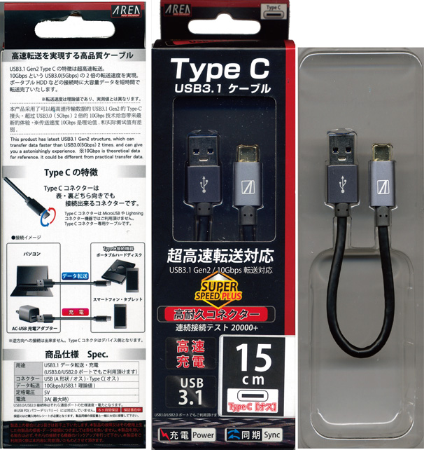 この手の短いケーブルは、充電専用であったり、通信可能でもUSB 2.0の仕様だったりするのが多いですが、折角 Xperia XZ Premiumが、USB 3.0対応(残念なことにGen1なので5Gbps)なので、USB 3.1ケーブルを購入しました。(ケーブルは、Gen2 10Gbps対応)