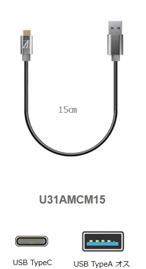 USB 3.1 Type-A > Type-C 15cmのケーブルです。