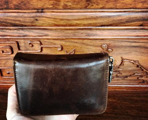 革と布の縫製およびファスナーが以外にしっかりしてそうなので安心です。ファスナーのゴールドがとても綺麗で開け閉めの途中で引っかかる事もまったく無い。ファスナーの品質は可もなく不可もなく、引き手部分が大きく掴みやすい。光沢めっきが施されてチャチさはありません。他のカードケースに磁石を使ったタイプがありますが、手間がかからない分カードの磁気消失のリスクもあります。こちらのファスナータイプの方が安心ではないでしょうか。ファスナーがぐるりと配置されているため開口が大きく取れます。やろうと思えば180度開きますが、110度程度が無理のない角度でしょう。