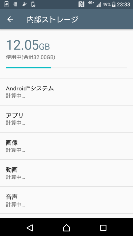 初期段階(Android 6.0)の段階のストレージ残量は12.05GBでした。