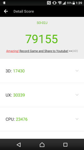 Android6.0の時は6万台でしたが、Android7.0に上げるとスコアが向上しました。