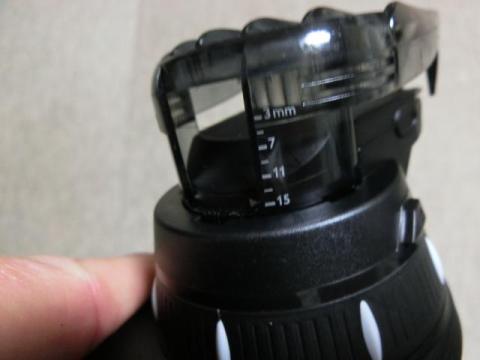 回転させることによって コームが上下してカットの長さを調整します。