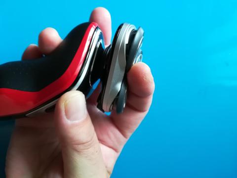 3枚刃シェーバーでまず驚いたのは、電源ON時の静かさです。こんな回転音でしっかり剃れるのか不安になるぐらいで、いつも使っているシェーバーは振動が早く音も大きい某有名メーカーのシリーズ7なので、その音の違いにびっくり。これなら早朝に使っても音が響くことなく家族の睡眠の邪魔になりません。